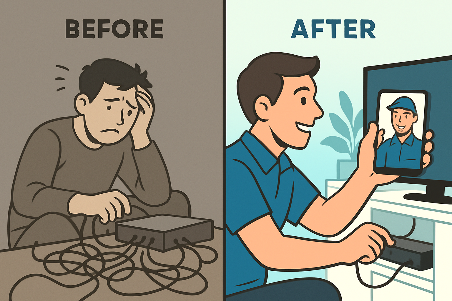 A technician from a national broadband provider is dispatched to a customer’s home for a router issue. The drive takes 30 minutes. With remote video support, instead the tech joins a live video call from the office, sees the blinking lights on the modem, guides the customer to reseat cables—and resolves the issue in under 10 minutes.